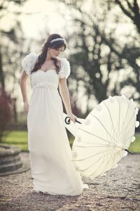 Pour vous protéger du soleil ou de la pluie, les parapluies se sont aussi transformés en un accessoire de mariage très tendance. Si vous avez peur que la pluie s’invite à votre grand jour, armez-vous d’un beau parapluie de mariage. Le parapluie inversé est très tendance. Soyez la plus jolie avec un parapluie inversé transparent ! Vous serez sublime sur toutes vos photos. Concernant la taille du parapluie, si vous avez une robe imposante avec une longue traine, optez pour un parapluie XXL.
